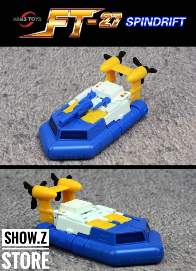 Fans Toys FT-27 Spindrift stands 12CM/4.7″ tall in robot mode and contains die-cast parts. Spindrift changes from robot to hovercraft and back!